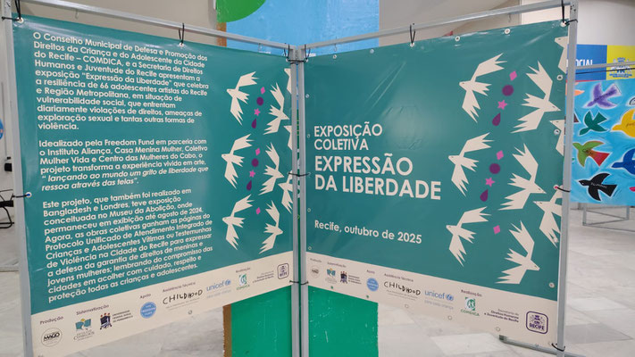 Die Teilnahmen an der Ausstellung „Ausdruck von Freiheit“ war für die von uns unterstützten Jugendlichen ein Meilenstein der Hoffnung und Widerstandsfähigkeit. Sie wurde vom Freedom Fund in Zusammenarbeit finanziert und mit dem Institut Aliança, dem Kollektiv Mulher Vida, dem Frauenzentrum „Centro das Mulheres do Cabo“ und dem "Casa Menina Mulher" realisiert.