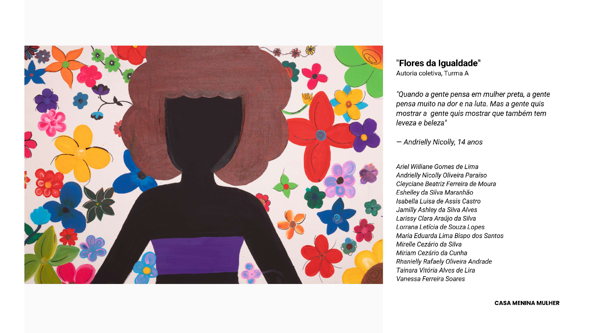 Wir von Casa Menina Mulher (CMM), einer sozialen Organisation mit Sitz in Recife, Pernambuco, glauben, dass jedes Mädchen und jede Frau das Recht hat, zu träumen, zu gestalten und sich auszudrücken.