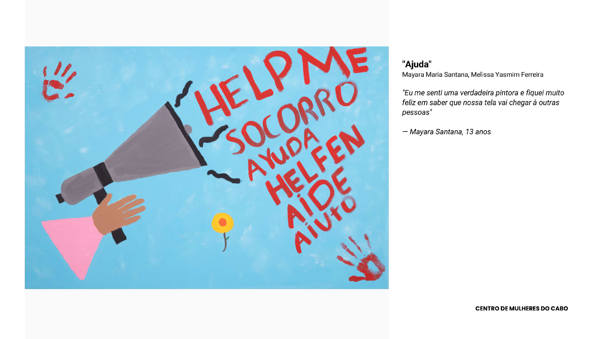 Die Ausstellung war eine Idee, die von den Organisationen selbst stammt. Wir wollten, dass die Erfahrungen der Mädchen in Kunst umgesetzt werden – als Spiegelbild dessen, was im Laufe des Projekts erarbeitet wurde. Da wir im Bereich der Gewaltprävention tätig sind, verstehen wir, dass Kunst Wege zur Neubewertung und Überwindung der Situationen der Verletzlichkeit eröffnen kann, mit denen die Mädchen täglich konfrontiert sind.