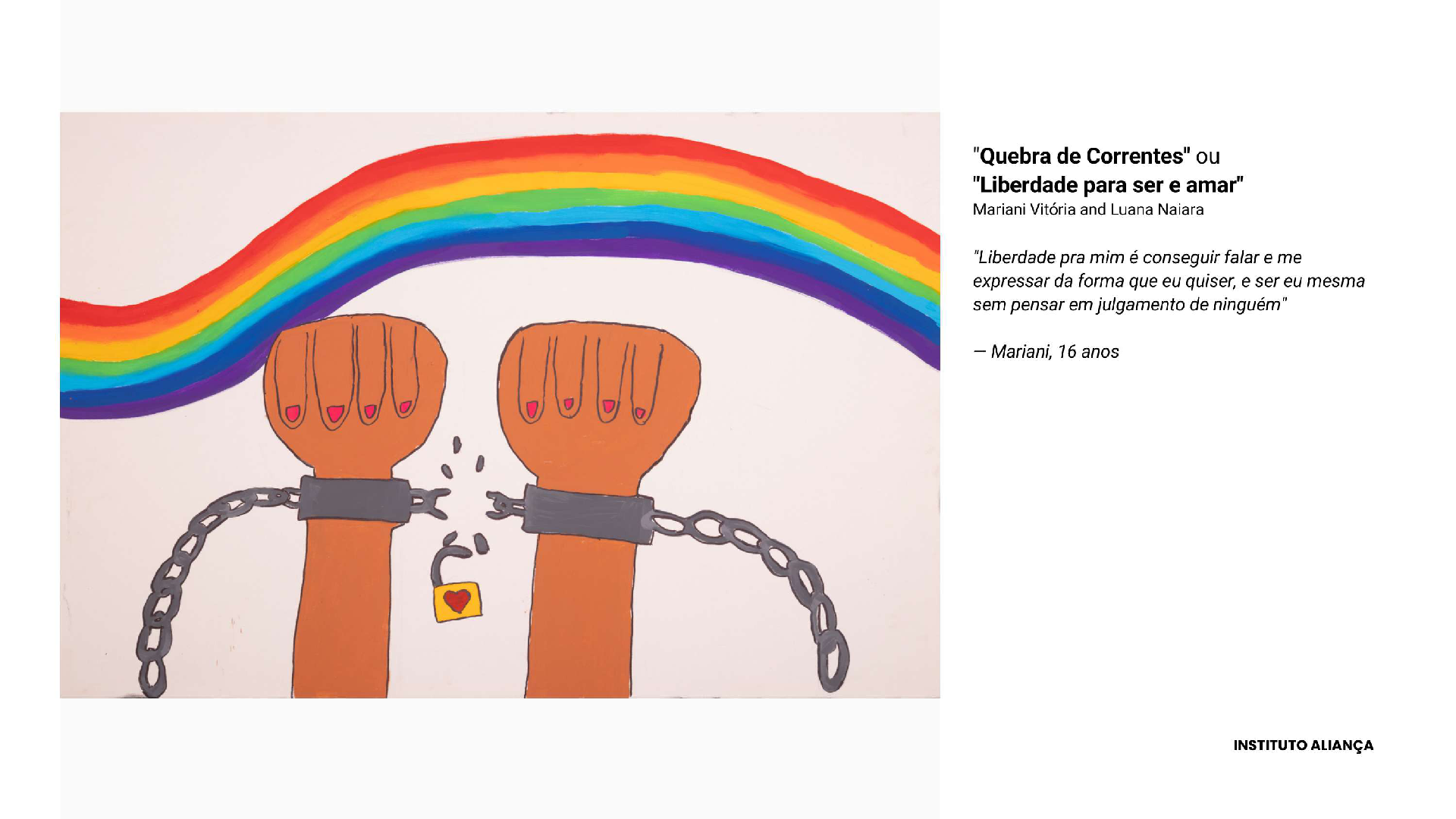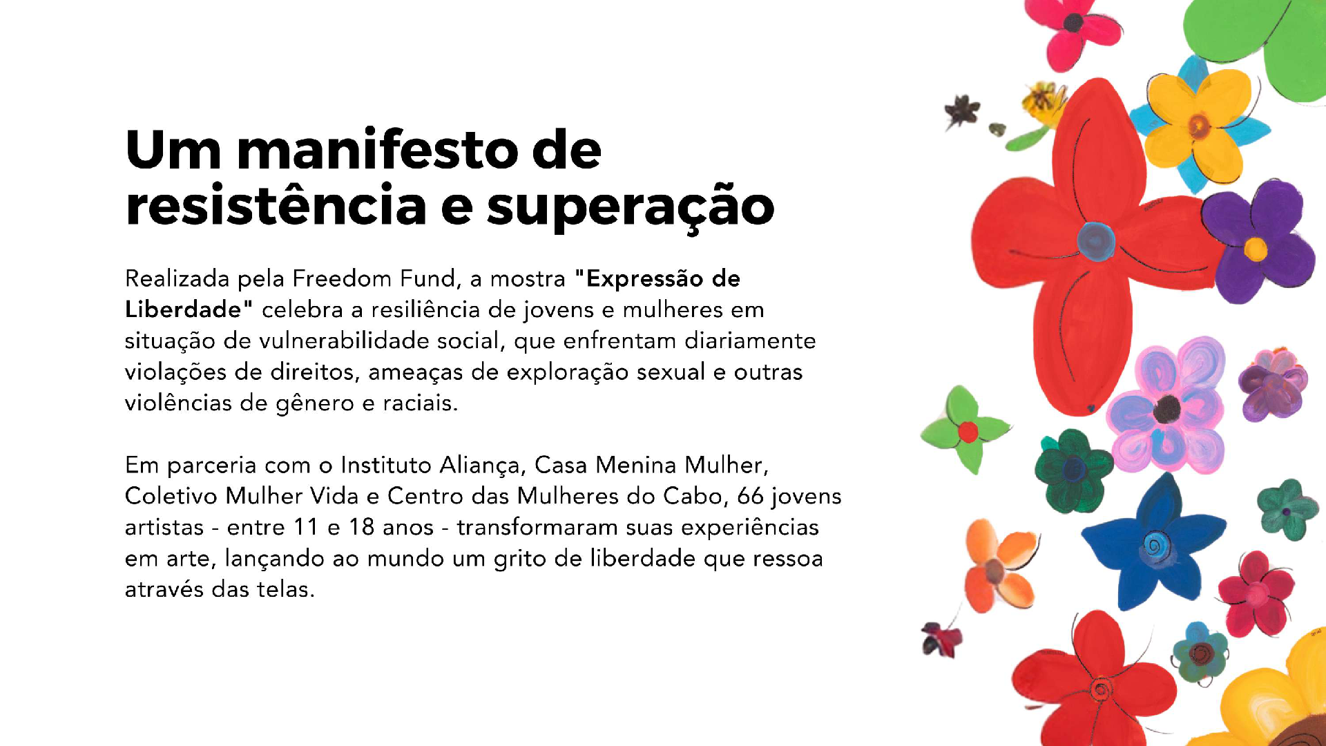 „Ausdruck der Freiheit“ bekräftigt die Macht der Kunst als Instrument des sozialen Wandels.In Brasilien wurden die Werke ausgestellt:
