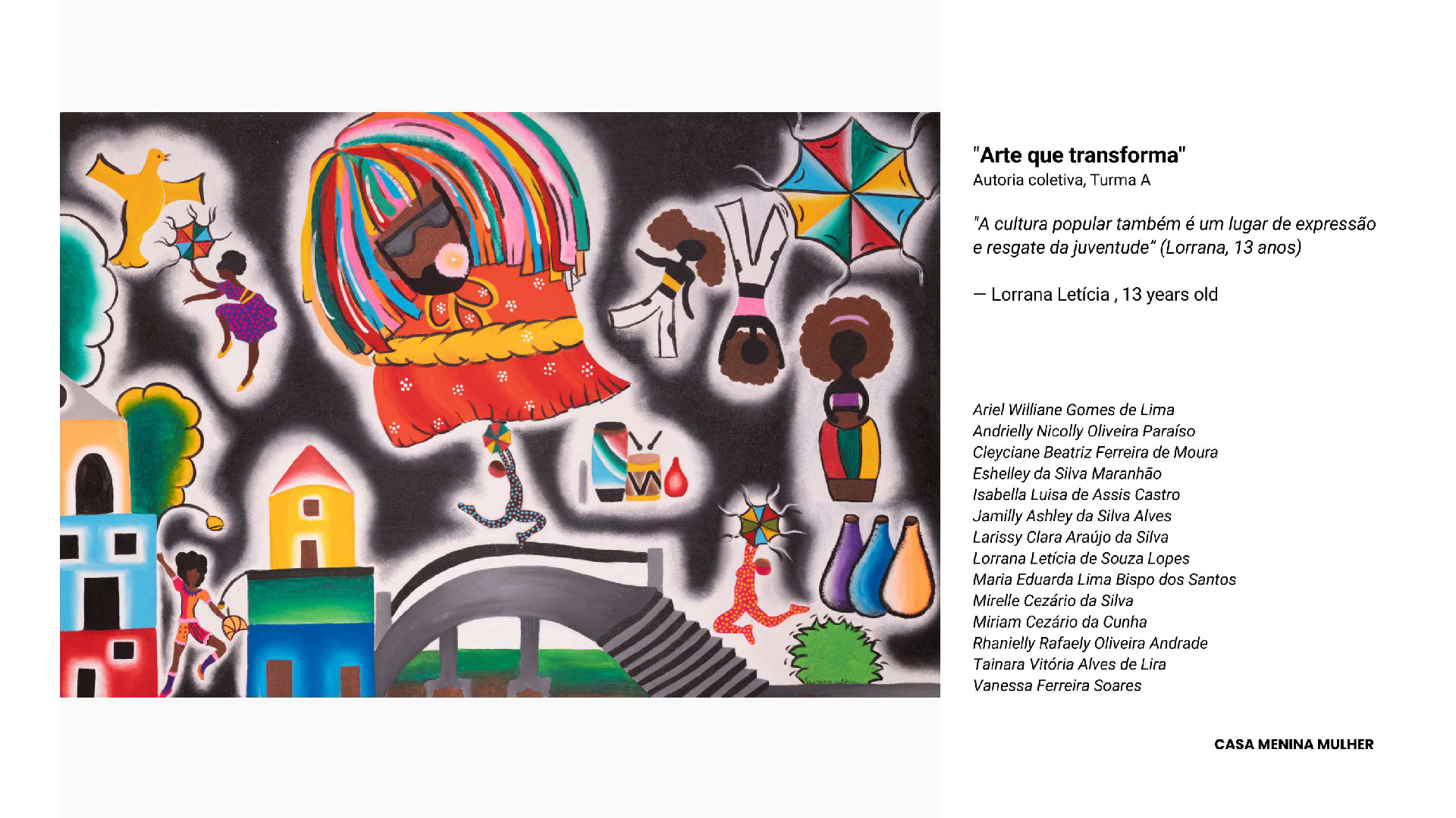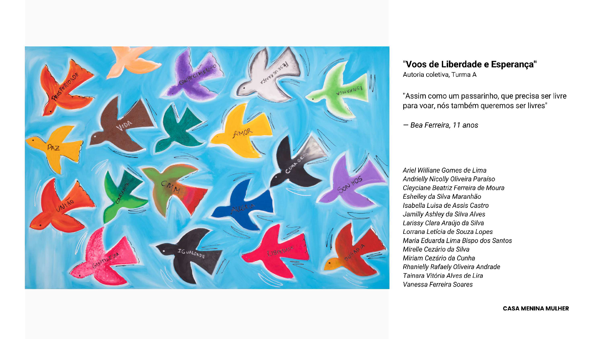 Für uns von der Casa Menina Mulher ist die Teilnahme an „Expression of Freedom“ eine Bestätigung dessen, woran wir seit Beginn glauben: Freiheit ist ein unverhandelbares Recht und muss auf jede erdenkliche Weise gelebt werden – auch durch Kunst.